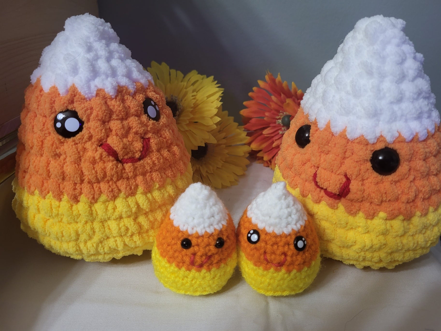 Your sweet tooth will hurt after you see how cute these candy corns are. These little guys are so cute and fun to sit there and squish. You can choose to have stitched on faces to make them safe for babies. They are soft enough that you don't mind so much when the kids throw them in the house or at each other. You can turn any of these cuties into keychains, unclip them and play with them again, or change out the critter from one of our other fun squishes! Check out The Keychain Adaptor to go with them. This design is a crafts by cici original and can only be gotten from us.