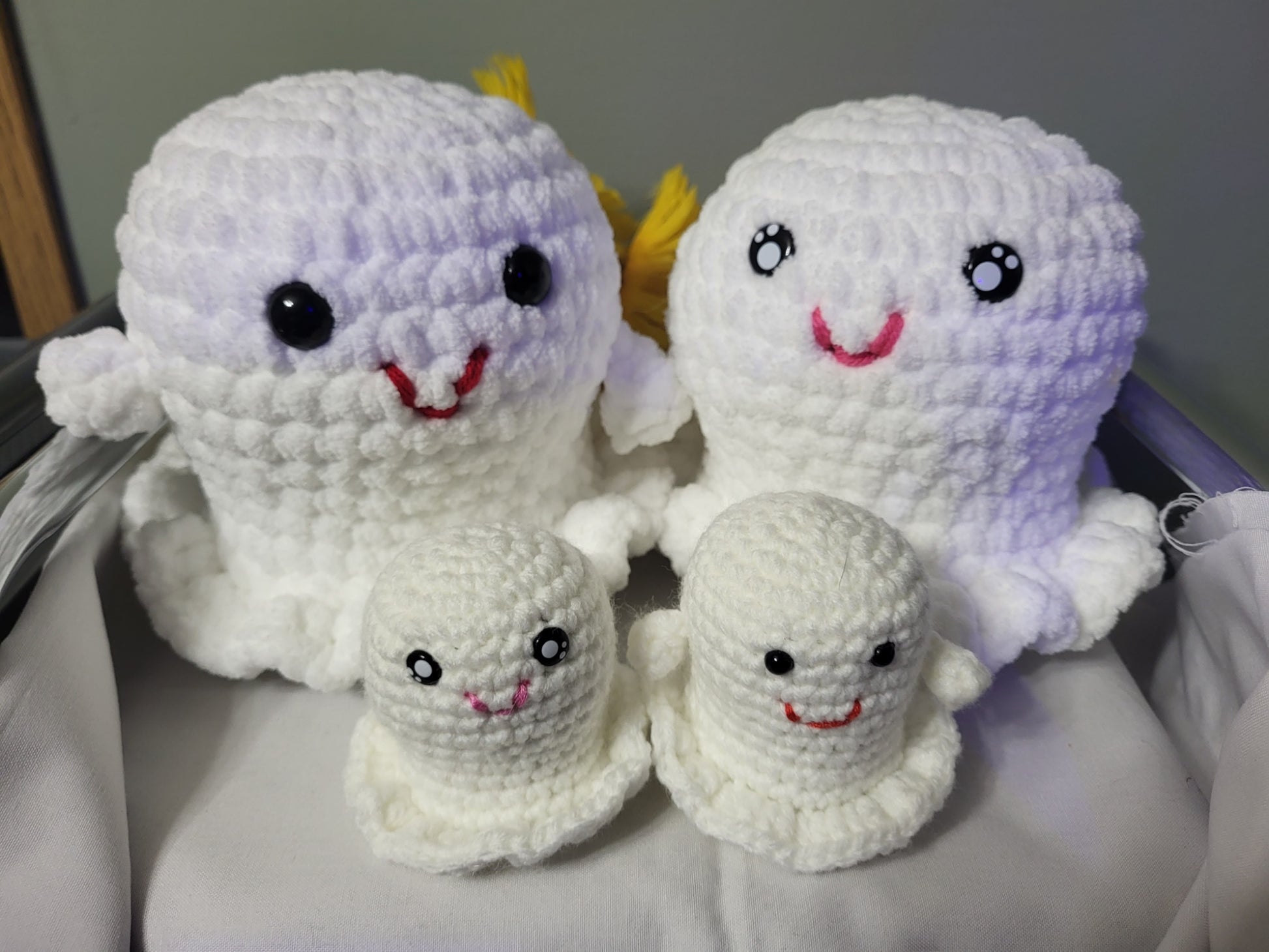 These bootiful ghosts will float right into your hear. These little guys are so cute and fun to sit there and squish. You can choose to have stitched on faces to make them safe for babies. They are soft enough that you don't mind so much when the kids throw them in the house or at each other. You can turn any of these cuties into keychains, unclip them and play with them again, or change out the critter from one of our other fun squishes! Check out The Keychain Adaptor to go with them. This design is a crafts by cici original and can only be gotten from us.